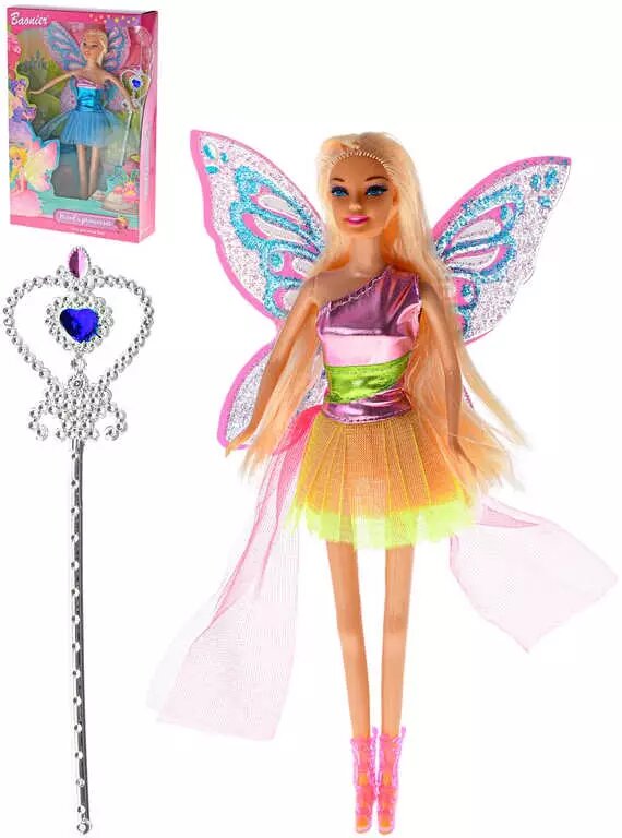 Panenka víla kloubová s křídly 30cm set s kouzelnou hůlkou 2 druhy