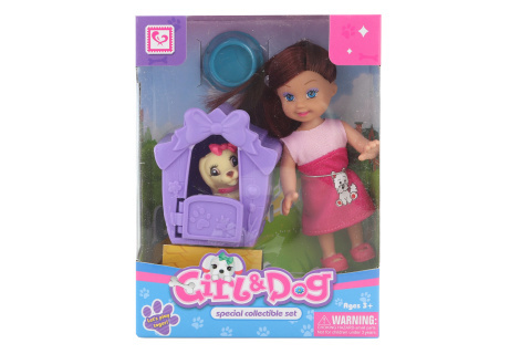 Panenka holčička s pejskem. Součástí balení je také plastová psí bouda a miska. Rozměry panenky cca 11 x 4 cm. Rozměry balení cca 12 x 16 x 6 cm. Věk 3+ číst celé