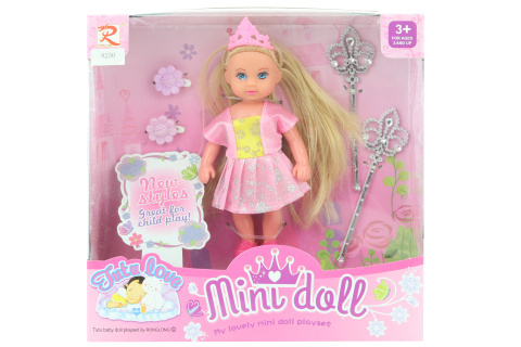 Panenka princezna s doplňky. Rozměry panenky cca 14 x 6,5 cm. Rozměry balení cca 20 x 19,5 x 6 cm. Věk 3+ číst celé