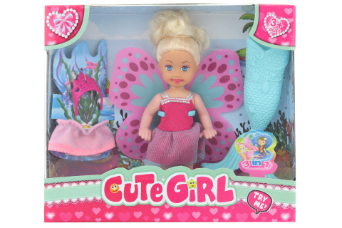 Panenka s doplňky 3v1. Panenku lze proměnit na mořskou pannu, panenku s křídly nebo na princeznu s korunkou. Rozměry panenky cca 12 x 5 cm. Rozměry balení cca 18 x 15,5 x 4,5 cm. Věk 3+
