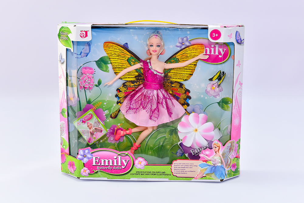 Panenka 29 cm vysoká s křídly. Panenka má kloubové nohy i ruce. Součástí je příslušenství pro panenku nebo holčičku.