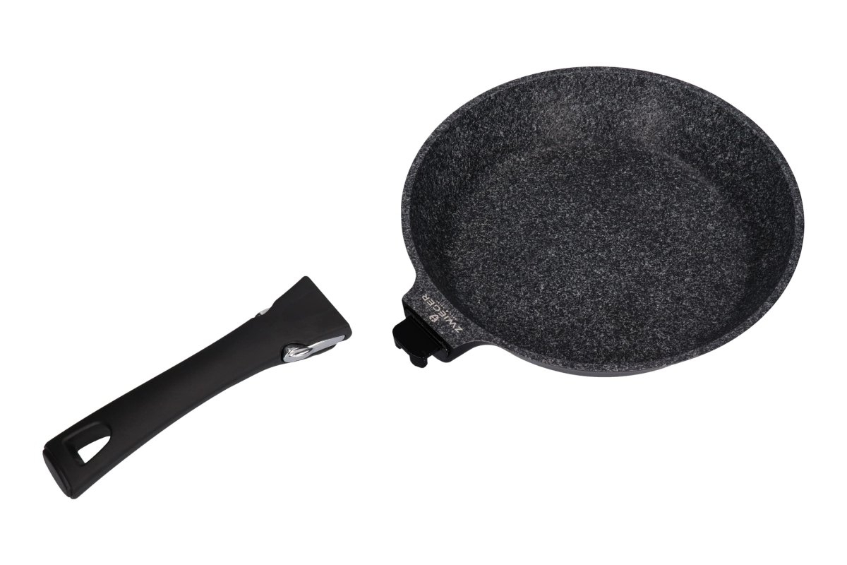 Patelnia Zwieger wykonana jest z odlewu aluminium z odłączanym uchwytem. Innowacyjna 3-warstwowa powłoka nieprzywierająca Greblon. C3 GRANITE sprawia, że jest ona niezwykle trwała i pozwala na używanie jej w wysokich temperaturach. Patelnia jest również wolna od PFOA, a jej maksymalna temperatura pracy wynosi 240C. Dzięki stylowemu wyglądowi patelnia Zwieger doskonale sprawdzi się w każdej kuchni.