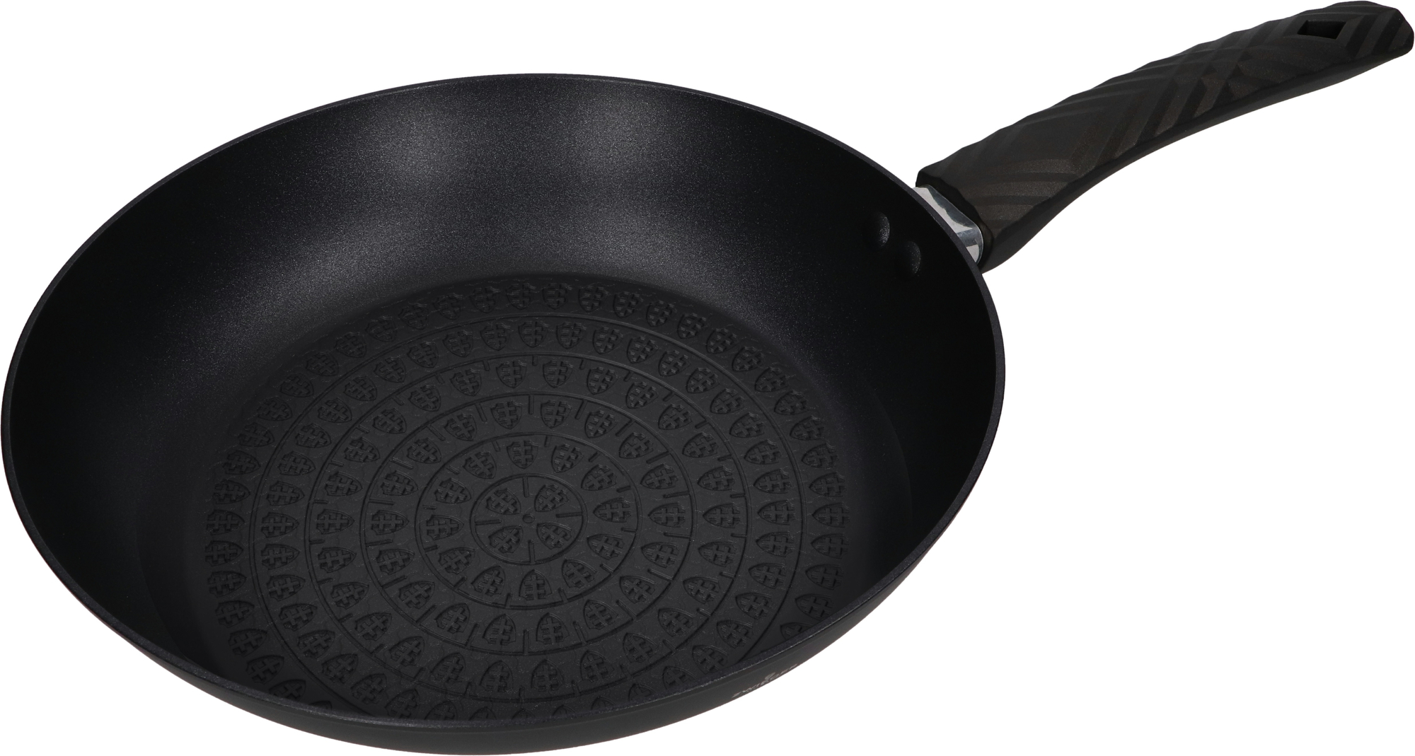 Patelnia wykonana z aluminium tłoczonego na gorąco typu forged. Wewnątrz 3-warstwowa nieprzywierająca powłoka firmy PFLUON z charakterystycznym wzorem na jej dnie, który wspomaga proces smażenia z uwagi na dokładne rozchodzenie się tłuszczu po dnie patelni. Na zewnątrz patelnię zabezpieczno silikonowym lakierem żaroodpornym odpornym na przebarwienia i odpryski. Maksymalna temperatura pracy wynosi 220*C. Patelnia na wszystkie rodzaje kuchenek, w tym płyty indukcyjne.