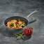 Ochranná vrstva odolná proti poškrábání umožňuje použití kovového kuchyňského náčiní bez obav z poškození. Třívrstvé tělo nádobí kombinuje nerezovou ocel s hliníkovým jádrem pro optimální rozložení tepla až do okrajů nádoby.