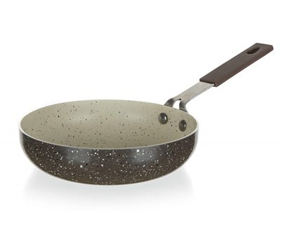 Hliníková presovaná mini pánev MARRONE 14 x 3 cm s vnitřním 2vrstvým nepřilnavým povrchem, který je v krémové mramorové struktuře. Vnější povrch je opatřen 2vrstvým žáruvzdorným nástřikem v hnědé mramorové barvě. Pánev není vhodná na indukci.
