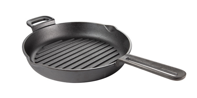 Masivní litinová pánev s vysokou akumulací tepla vynikající pro grilování masa, ryb a zeleniny na plynových sporácích, v grilech i pečicí troubě. Vytvořením nepřilnavé povrchové ochranné vrstvy se špičkové vlastnosti odolného litinového nádobí zvyšují s každým použitím. Vhodná pro použití v Power grilu PARTY TIME (kód 707210). 5 roků záruka.