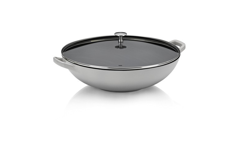 Trendy nádobí s dlouhou životností ze série Kela Calido: Velký wok o průměru 36 cm a zvenčí lesklým povrchem bude vaším novým spolehlivým společníkem v kuchyni, když jde o zdravou a šetrnou přípravu vašich pokrmů. Tento šedý wok je vyroben z litiny a má uvnitř černý a hrubý smalt. Wok lze používat až do 220 °C a je vhodný na všechny typy sporáků. Wok se skleněnou poklicí je součástí rozsáhlé série nádobí Calido by Kela!Smaltovaná litina se skleněnou poklicí světle šedá/černá 36cm, 17cm v, 4L