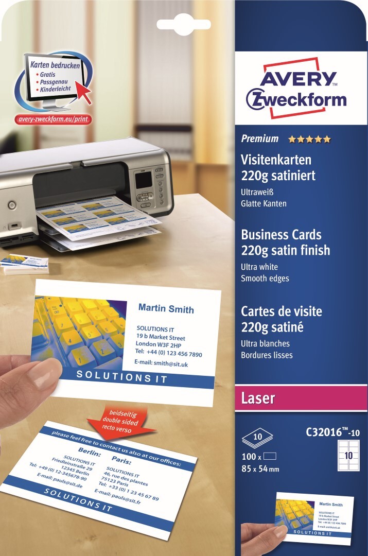Avery Zweckform C32016-10 Vizitkový papír 85x54 mm, 220g/m2, 10 archů, 100 ks