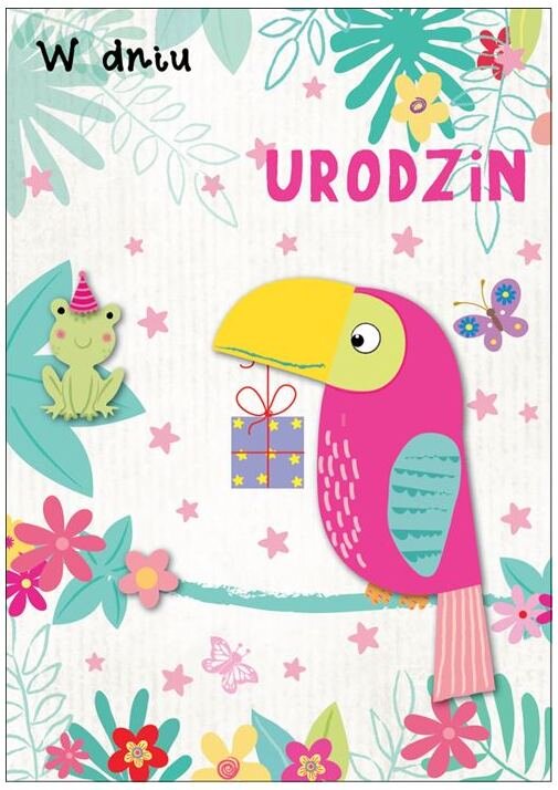 Karnet DK-710 Urodziny dziecięce (papuga, wymienne cyferki), Passion