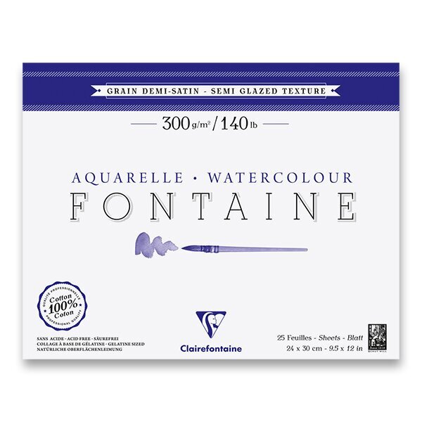 Akvarelový blok Clairefontaine Fontaine Semi Glazed - 24 x 30 cm, 25 listů, 300 g