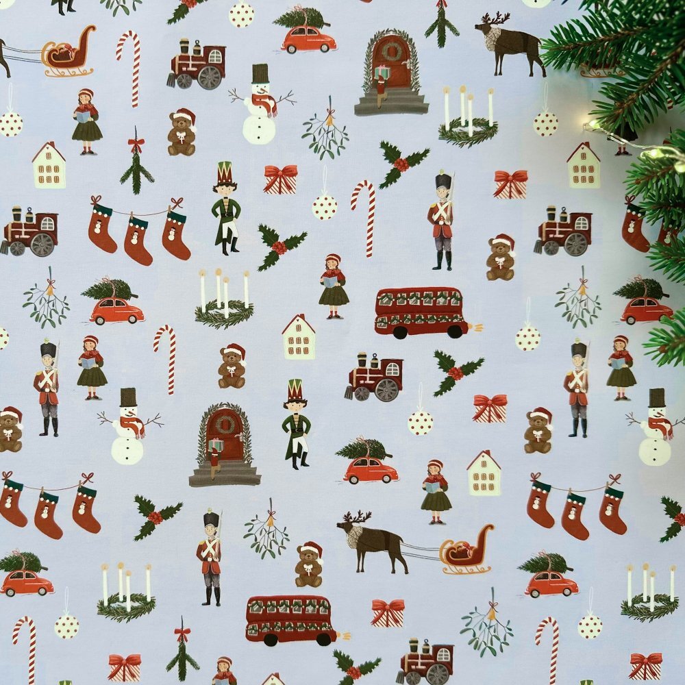Vánoční balicí papír Anglická pohádka ilustrovala česká výtvarnice Bára z Nikolajky.