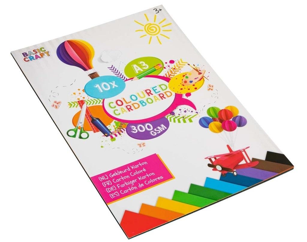 20 kartonowych arkuszy formatu A3 w kilku kolorach. Kolorowe kartki są idealne do kreatywnej ekspresji, czy to za pomocą farb, czy też nożyczek i kleju. Arkusze mają gramaturę papieru 300 g/m2, dzięki czemu są grubsze i bardziej wytrzymałe.