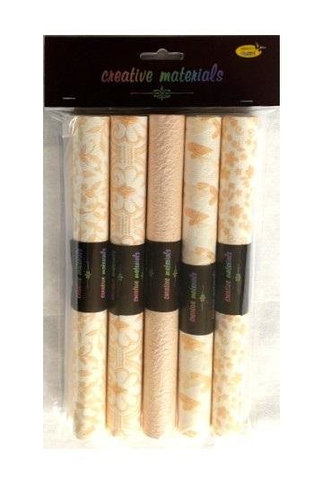 Miks 5 papierów Indian Style -CHADNA-, format 25x35, a 5 arkuszy Piękne czerpane , barwione w masie papiery z dodatkowymi zdobieniami w stylu indyjskim. Nadruki wykonane z dodatkiem farby złotej i brokatowej.Gramatura 100. číst celé