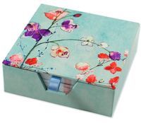 Zdobione 250 karteczek do zapisków, pakowane w eleganckie pudełko z wstążką, zamykane na magnes. Karteczka o wymiarze 10x10 cm.