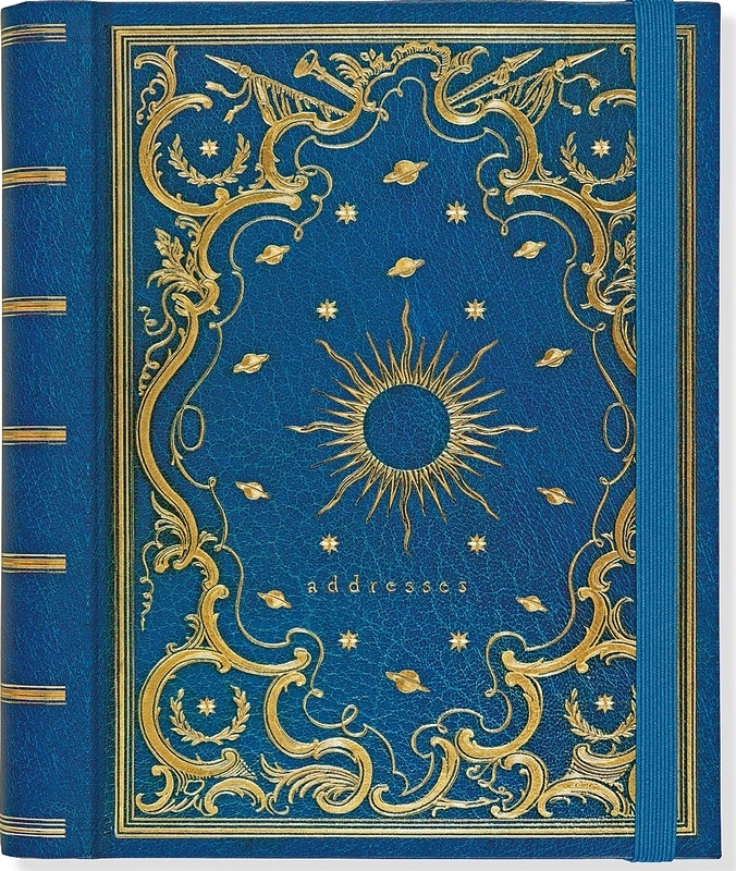 Elegancki, poręczny adresownik z 175 stronami na adresy do wypełnienia, zamykany na gumkę. Przepiękna, stylowa okładka z tłoczeniami. W środku opisy w języku angielskim.