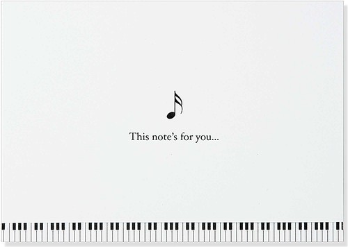 Papeteria Mini Muzyka. Elegancka kolekcja karnetów w pudełku, zawierająca 14 sztuk kartek z takim samym nadrukiem wraz z 15 kopertami.