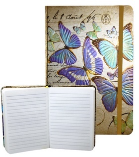 Zápisník s gumičkou 95x140 mm zlatý s motýli A