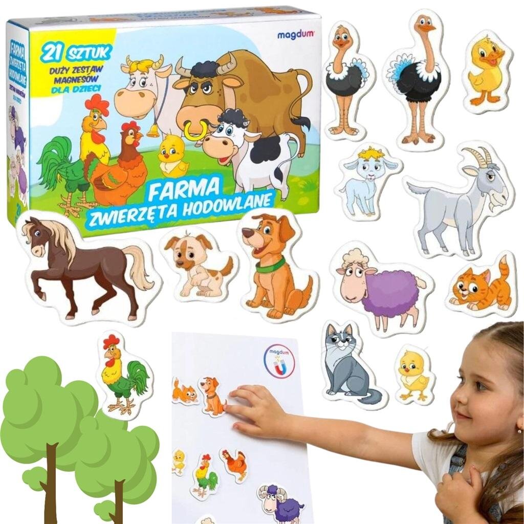 Zestaw magnesów "Zwierzęta hodowlane" to fascynująca podróż w świat zwierząt mieszkających na farmie. Dzięki magnesom, maluch rozwinie swoje zainteresowania, ucząc się jednocześnie cennych umiejętności.