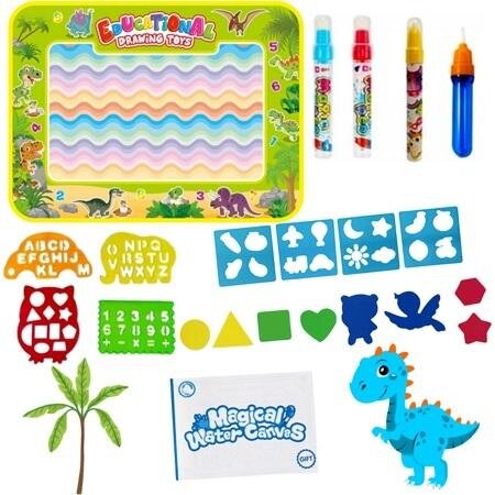 Wielofunkcyjna mata wodna z motywem dinozaurów to fascynująca zabawka, która zapewnia dzieciom niezapomnianą przygodę tworzenia pięknych obrazków bez użycia farb czy kred. Ta innowacyjna mata do malowania nie tylko sprawia, że proces staje się przyjemny, ale także utrzymuje czystość i porządek wokół siebie.