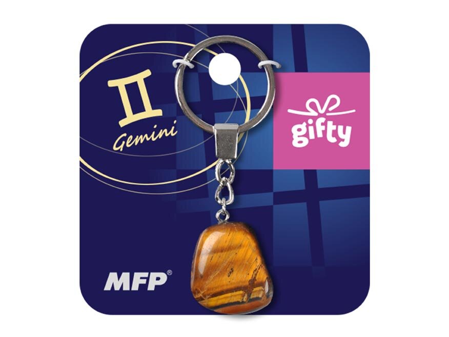Klíčenka Zodiac - Gemini je stylový a jedinečný doplněk navržený pro ty, kteří se narodili ve znamení Blíženců. Hlavním prvkem této klíčenky je opracovaný kámen tygří oko, známý svým zlatohnědým leskem a spojovaný s energií, sebevědomím a rovnováhou. Přívěsek je zavěšen na kovovém kroužku, který je pevný a praktický, ideální k připevnění na klíče, batoh nebo kabelku.