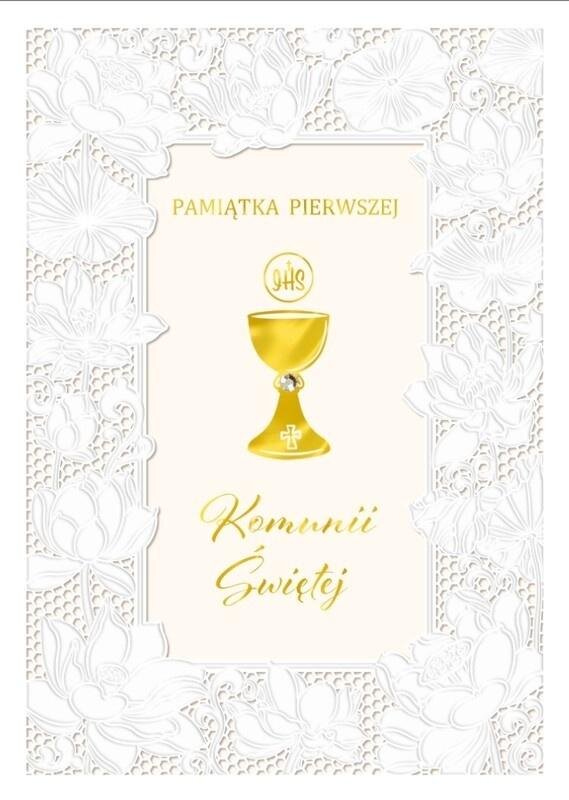 Elegancki karnet na Pierwszą Komunię Świętą w formacie B6 z laserowo wycinanym wzorem. Delikatny, ażurowy motyw z symbolami religijnymi, takimi jak hostia, krzyż czy gołąb. Wewnątrz miejsce na życzenia i dane uroczystości. Idealna pamiątka tego ważnego dnia. číst celé