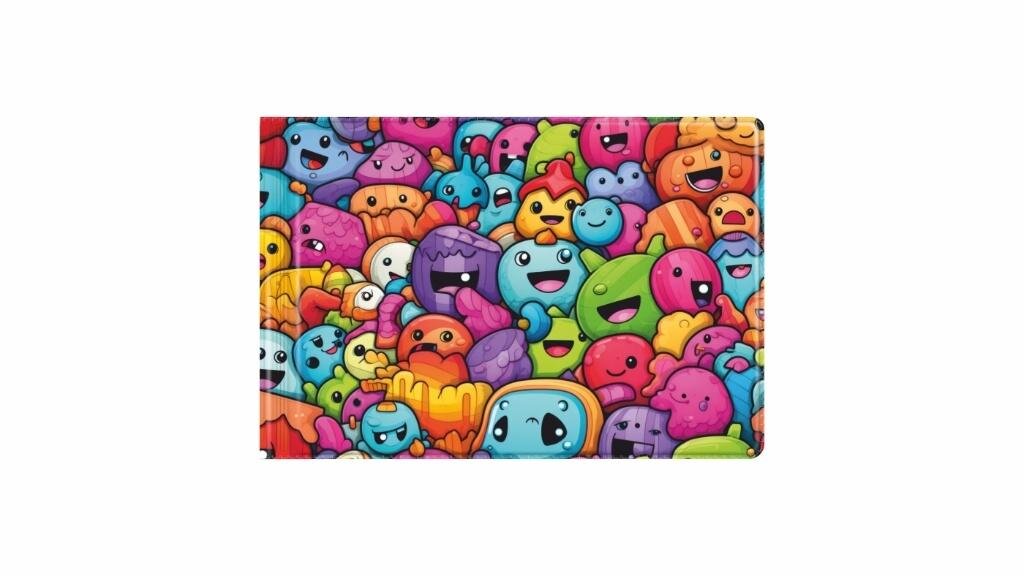 Okładka wykonana z folii PVC z pełnym, ozdobnym nadrukiem, wewnątrz usztywniona tekturą. Wyposażona w 2 pojedyncze koszulki i 2 kieszonki na wewnętrznej stronie okładek. Zabezpiecza e-legitymację szkolną, kartę miejską czy inne dokumenty w formacie ID-1.