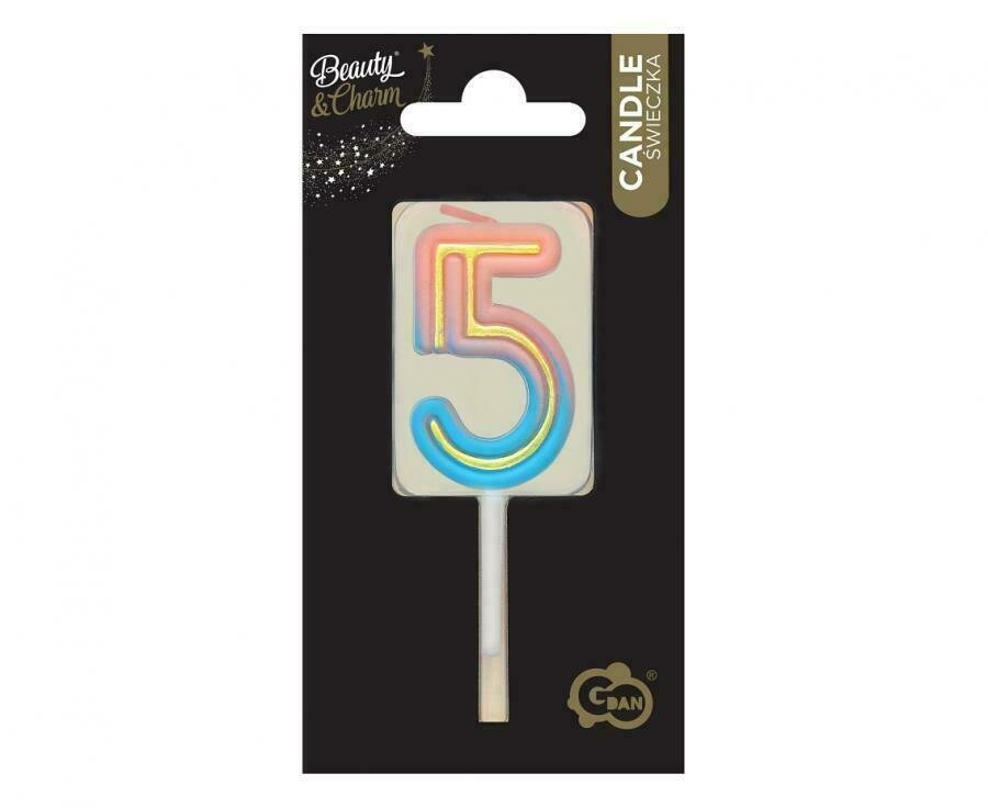 Świeczka cyferka B&C Neon 5, 44x27x12mm, 1 szt. 7C-SCN5