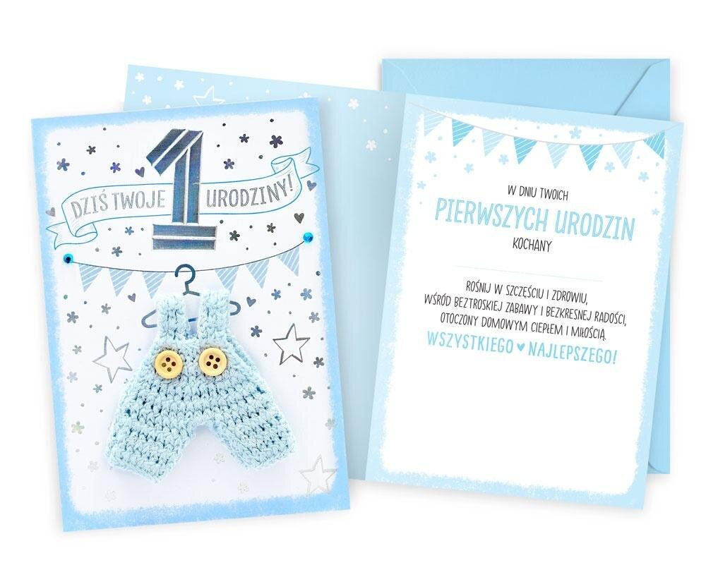 Kartka Dream Cards "Dziś Twoje 1 urodziny" DK-1229 Kartka B6 z ozdobnej serii Dream Cards na urodziny z wymiennymi cyframi - nieduża, ale robi wrażenie dzięki atrakcyjnej kolorystyce i ciekawym zdobieniom. To idealny wybór łączący przyjazną cenę z jakością. Cechy szczególne: wielkość: B6, 16.6 x 11.7 cm po złożeniu, koperta: w zestawie, kolorowa, zdobienia: kolorowe, różnorodne, bogate (w zależności od wzoru: przyklejane dekoracje, elementy biżuteryjne, odstawniki, metaliczne folie, tłoczenia itp.), okazja: urodziny 1, roczek