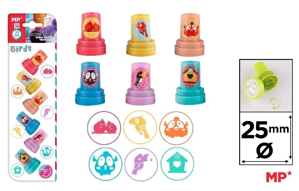 Blister zawiera 6 różnych pieczątek w podobnej tematyce. Średnica pieczątki: 25mm