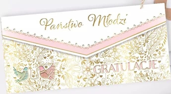Ozdobna koperta na pieniądze, złocona i tłoczona. W zestawie wkałdka z życzeniami oraz koperta ochronna. číst celé
