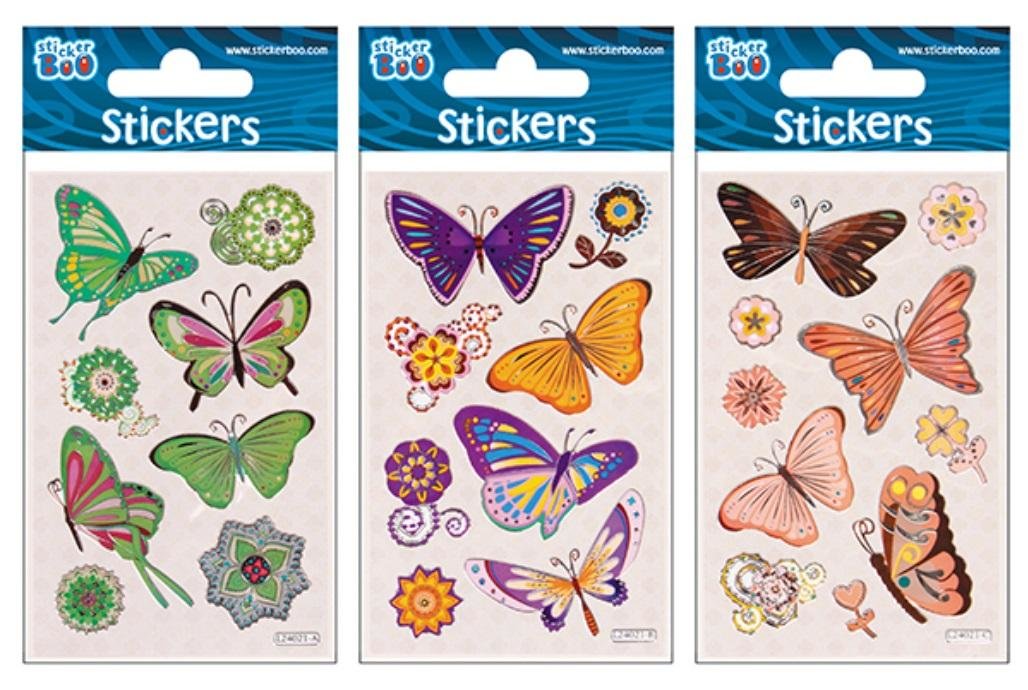 Naklejki BOO Sticker z motylami. Dostępne w 3 odsłonach graficznych. Idealne do zdobienia rysunków i kolekcjonowania.