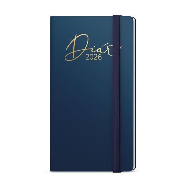 Kapesní týdenní diář v tmavě modré barvě a luxusní zlatou ražbou je malý pomocník pro Vaše plánování;Rozměr: 7,5 x 15 cm;Počet stran: 128;ZAKÁZKOVÁ VÝROBA OD 50 KS: V případě Vašeho zájmu o zboží s potiskem nebo ražbou kontaktujte Vašeho obchodního zástupce nebo můžete zaslat svou poptávku na...