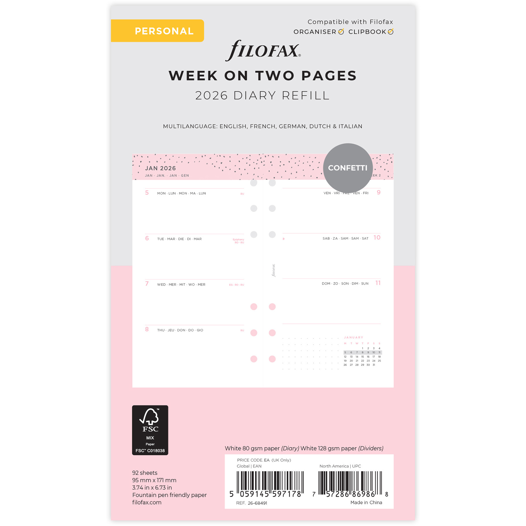 Filofax, Diářový set Confetti 2026, Osobní