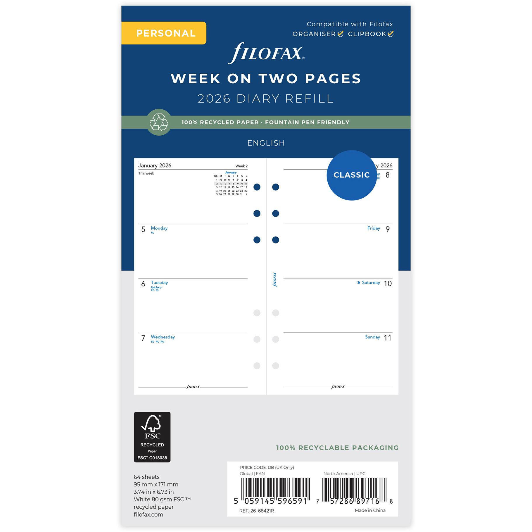 Filofax, Kalendář 2026 osobní, týden/2 strany, AJ, recyklovaný