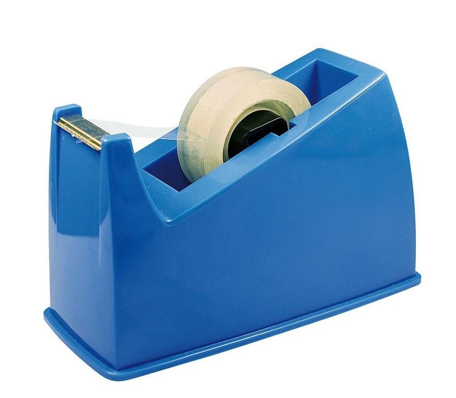 Wygodny w użyciu podajnik nabiurkowy do taśm klejących o maksymalnych wymiarach: 24 mm (szerokość) i 33 m (długość). Niezbędny w pracy biurowej. Metalowe ostrze zapewnia szybkie i precyzyjne obcinanie taśmy. Stabilny i obciążony korpus z antypoślizgową podkładką zapobiega przesuwaniu się podajnika nawet podczas odrywania taśmy jedną ręką. Dostępny w kolorach niebieskim i białym.