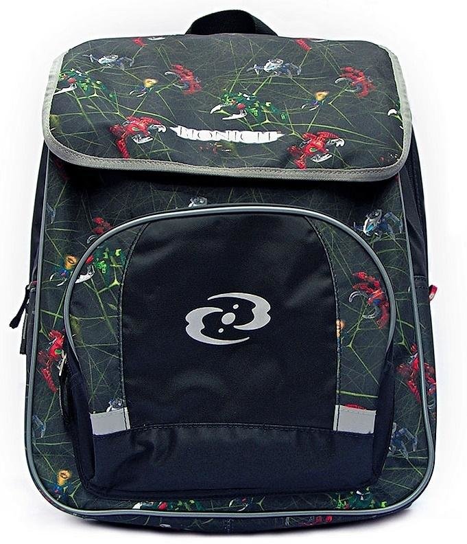 Jednokomorowy, z planem lekcji i wewnętrznym uchwytem przytrzymującym książki. Do plecaka dołączono dwa śmigła z serii LEGO Bionocle.