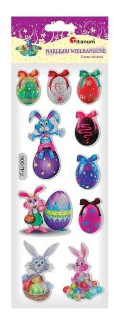 Naklejki wypukłe holograficzne pisanki 18x26mm, zające z pisankami 10szt. číst celé
