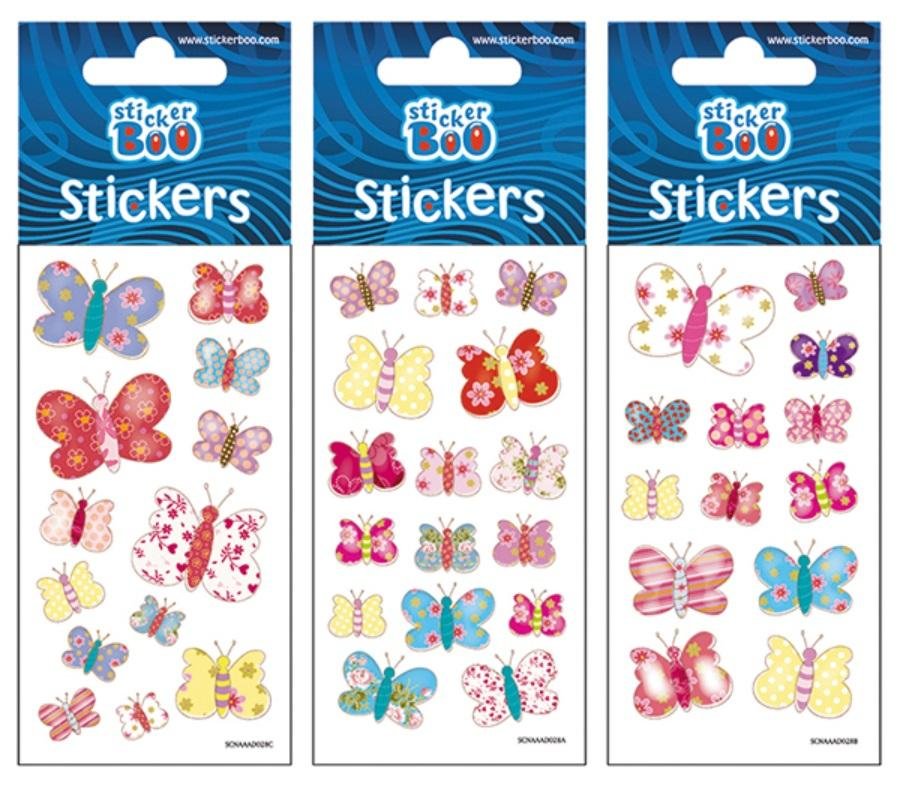 Naklejki BOO Sticker ze wzorami motyli. Dostępne w 3 odsłonach graficznych. Idealne do zdobienia rysunków i kolekcjonowania.