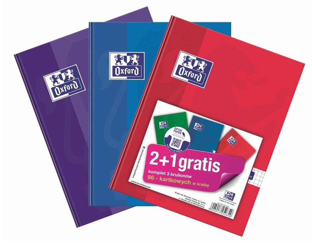Brulion Oxford w twardej oprawie 2+1 gratis, 60 kartkowy w kratkę z marginesem o gramaturze 90g. číst celé