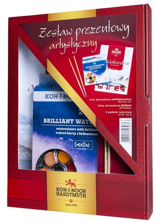 Zestaw zawiera:- pędzle nylonowe nr 0, 2- farby akwarelowe Brillioant 24 kolory- blok akwarelowy ArtWatercoulour A4 číst celé