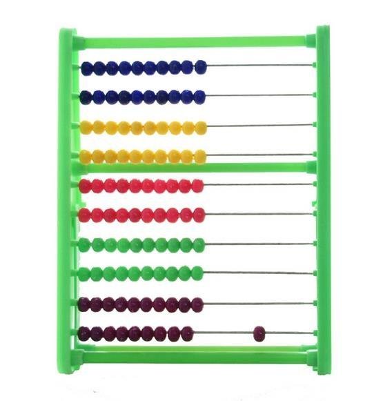 Plastikowe liczydło do ręki. Pięć różnych kolorów koralików: fioletowe, żółte, różowe oraz zielone. Każdy rządek oraz kolumna zawiera po 10 koralików. Ramka liczydła również kolorowa. Idealna zabawka do nauki podstaw matematyki. Liczydło posiada podstawkę, dzięki któremu może stabilnie stać. Mix...