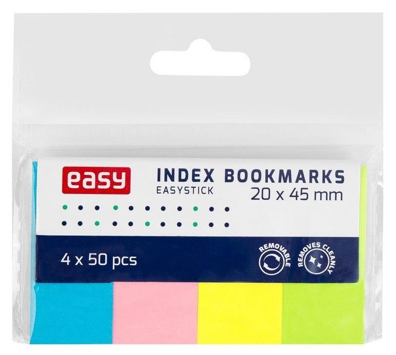 Zakładki indeksujące papierowe, samoprzylepne:-do zaznaczania stron i fragmentów tekstu-rozmiar: 45x20mm-kolor: neonowy mix kolorów-do wielokrotnego przyklejania i odklejania-nie pozostawia śladu kleju