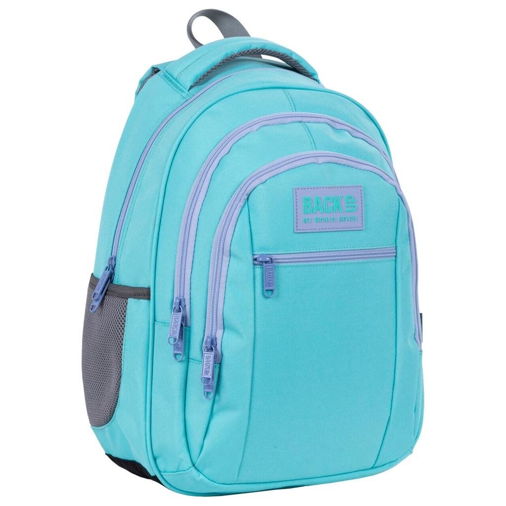 Plecak w pastelowym, turkusowym kolorze, uzupełniony fioletowymi akcentami. Odcienie pastelowe to hit sezonu! Must-have każdej fashionistki. Idealnie współgrające ze sobą kolory tworzą efektowną całość. Wyróżnij się z tłumu z plecakiem BackUP i przyciągnij uwagę!