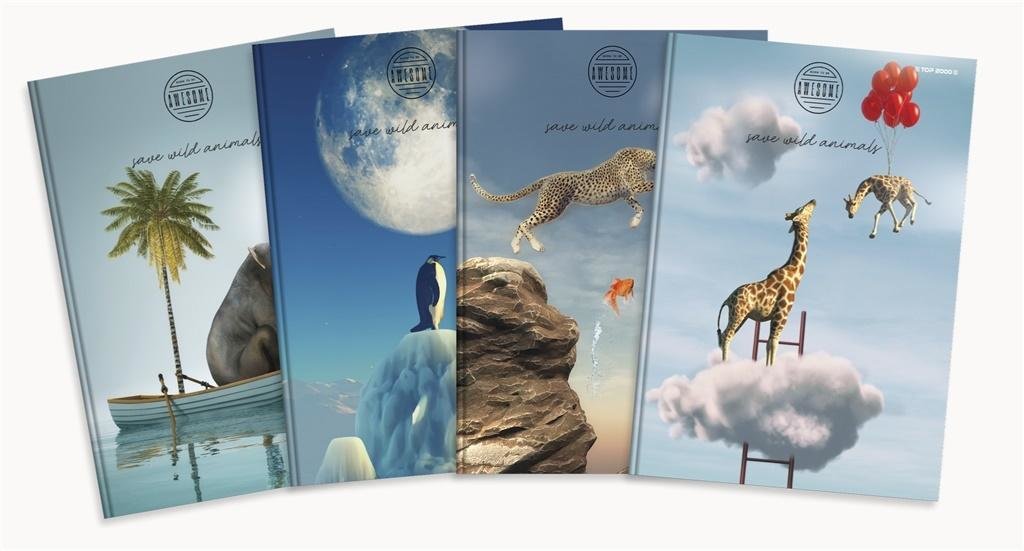 Opakowanie zbiorcze 5 sztuk. Mix wzorów.Twarde okładki pokryte folią soft touch oraz wybiórczo srebrnym brokatemZadrukowana okładka wewnętrznaNa pierwszej stronie adresówkaPapier o gramaturze 70 g/m2