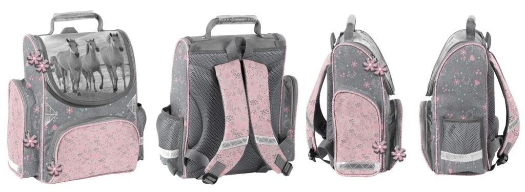 Tornister szkolny. Jedna obszerna komora z wewnętrzynym przedziałem. Na przodzie zapinana kieszeń. Dwie kieszenie po bokach: jedna z siatki, druga zapinana na zamek. Ergonomicznie ukształtowane, sztywne plecy. Wygodnie wyprofilowane szelki. číst celé