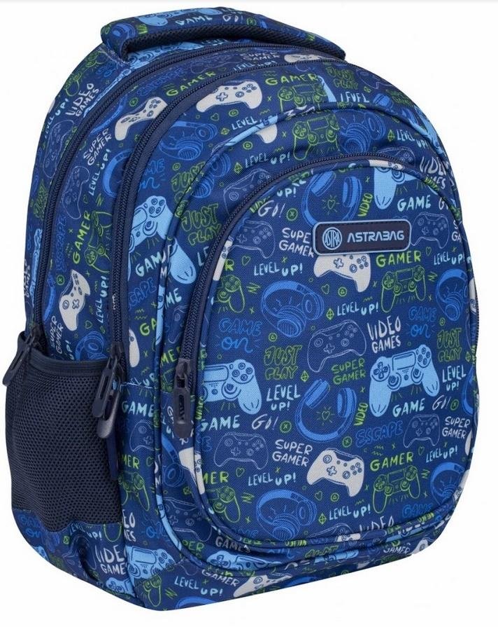 Gamingowy trzykomorowy plecak szkolny Astrabag dla najmłodszych miłośników gier komputerowych. Print z joystickami i kontrolerami doceni każdy pasjonat cyfrowej rozrywki. Plecak posiada pojemne komory z przegródkami oraz praktycznym organizerem na drobiazgi. Sprostają one wymaganiom każdego gracza, mieszcząc nie tylko książki i zeszyty, ale także pakiet ulubionych gier na konsolę. Plecak szkolny cechuje się kompaktowymi wymiarami oraz niewielką wagą. Zastosowano w nim najnowszą technologię Ergo Back minimalizującą naciski na barki i kręgosłup oraz zapewniającą poczucie komfortu dziecka. Dzięki niej ciężar na plecach rozkłada się równomiernie bez uciskania ramion.