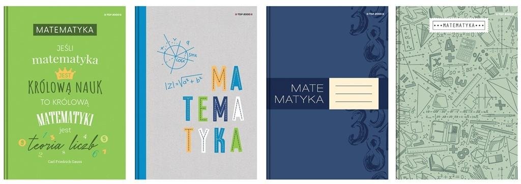 Opakowanie zbiorcze 5 sztuk.Twarde, laminowane, kartonowe okładkiMix 4 różnych wzorów okładek dedykowanych poszczególnym przedmiotom szkolnymFormat A5, 80 kartekPapier o gramaturze 60 g/m2