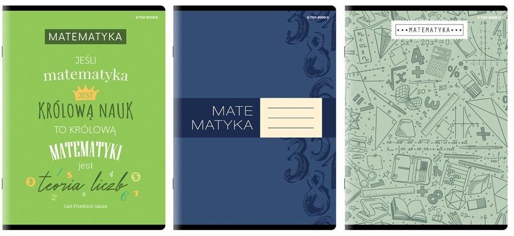 Opakowanie zbiorcze 5 sztuk.Miękkie, laminowane, kartonowe okładkiMix 3 różnych wzorów okładek dedykowanych poszczególnym przedmiotom szkolnymFormat A4, 60 kartekPapier o gramaturze 60 g/m2