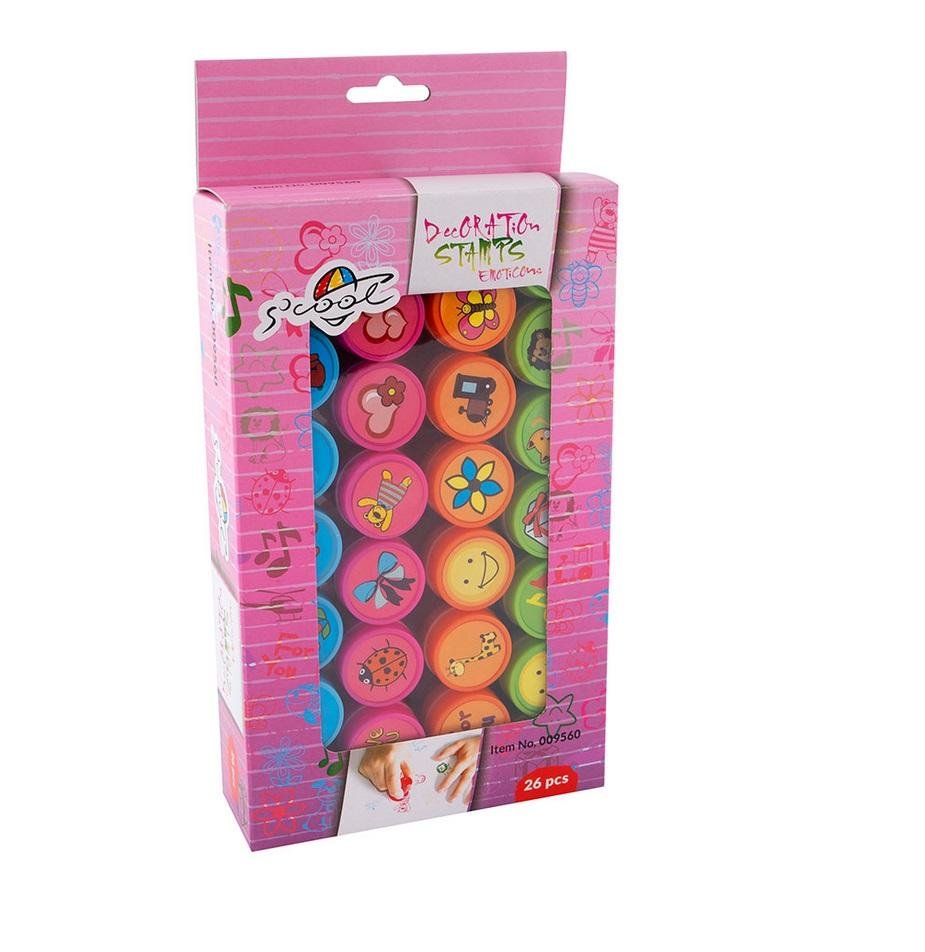 Set obsahuje 26 dekorativních razítek s různými motivy, které zahrnují například motýlky, srdíčka či květiny. Díky širokému spektru emotikonů můžete jednoduše a rychle ozdobit přáníčka, sešity, deníky nebo jiné papírové projekty. Razítka jsou snadno použitelná a dovolují vytvořit rozmanité kombinace a vzory podle vaší fantazie.