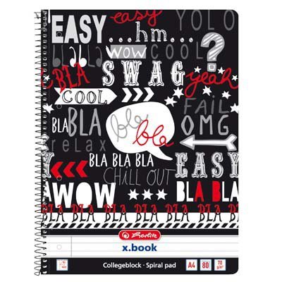 Slogan, A4/80 listů, 70 g/m2, okraje, bezdřevý, s kulatou spirálou, perforace, děrování, zaoblené rohy, linka číst celé